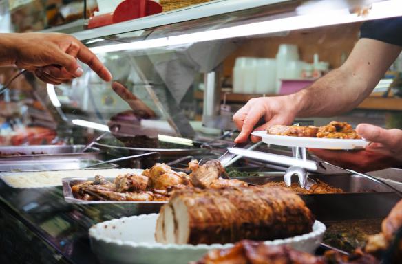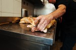 Il pollo allo spiedo e il pollo al mattone sono le pietanze forti della Rosticceria Francesco. Ruspanti, nello spiedo sulle braci di olivo o al forno, cotti lenti perché la pelle diventi croccante, faccia scudo e mantenga morbida la carne. Franco pensa a drogarli con il trito di rosmarino, sale fino e grosso, pepe macinato fresco e scorza di limone. Si vendono interi, a metà e a quarti. Nel caso dovesse avanzare, spolpate bene e conservate in frigorifero. Fatene polpette saporite.
